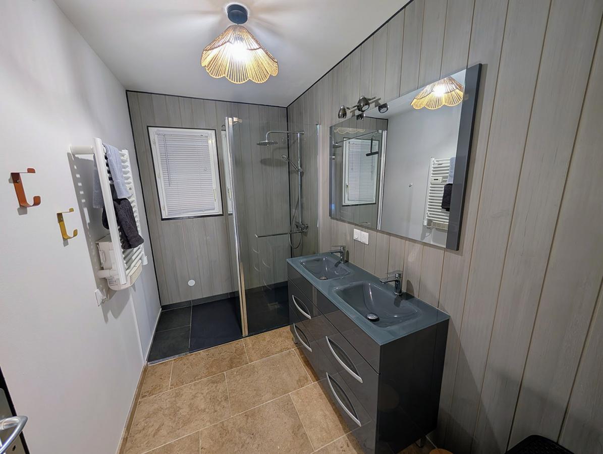 - Chambre 1 : 1 lit double (160×200), radiateur et climatisation réversible, penderie