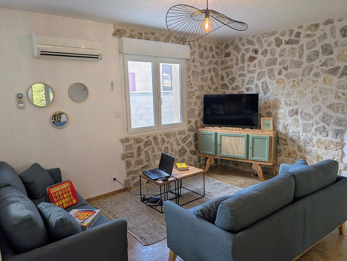 - Espace TV avec 2 canapés, écran plat 300 chaînes TV + lecteur CD/DVD Blu-ray