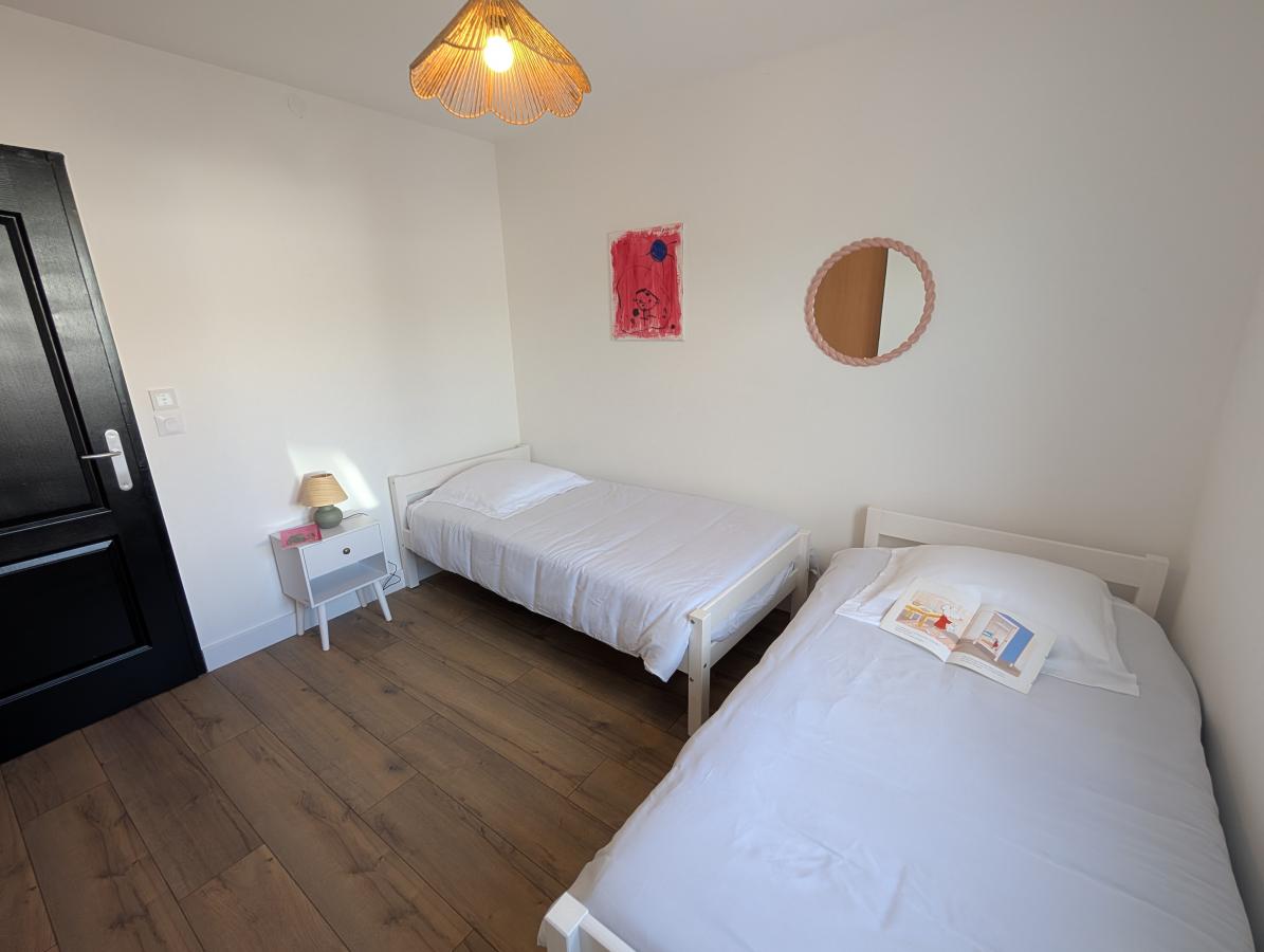 - Chambre 2 : 2 lits simples (90×190), radiateur, penderie