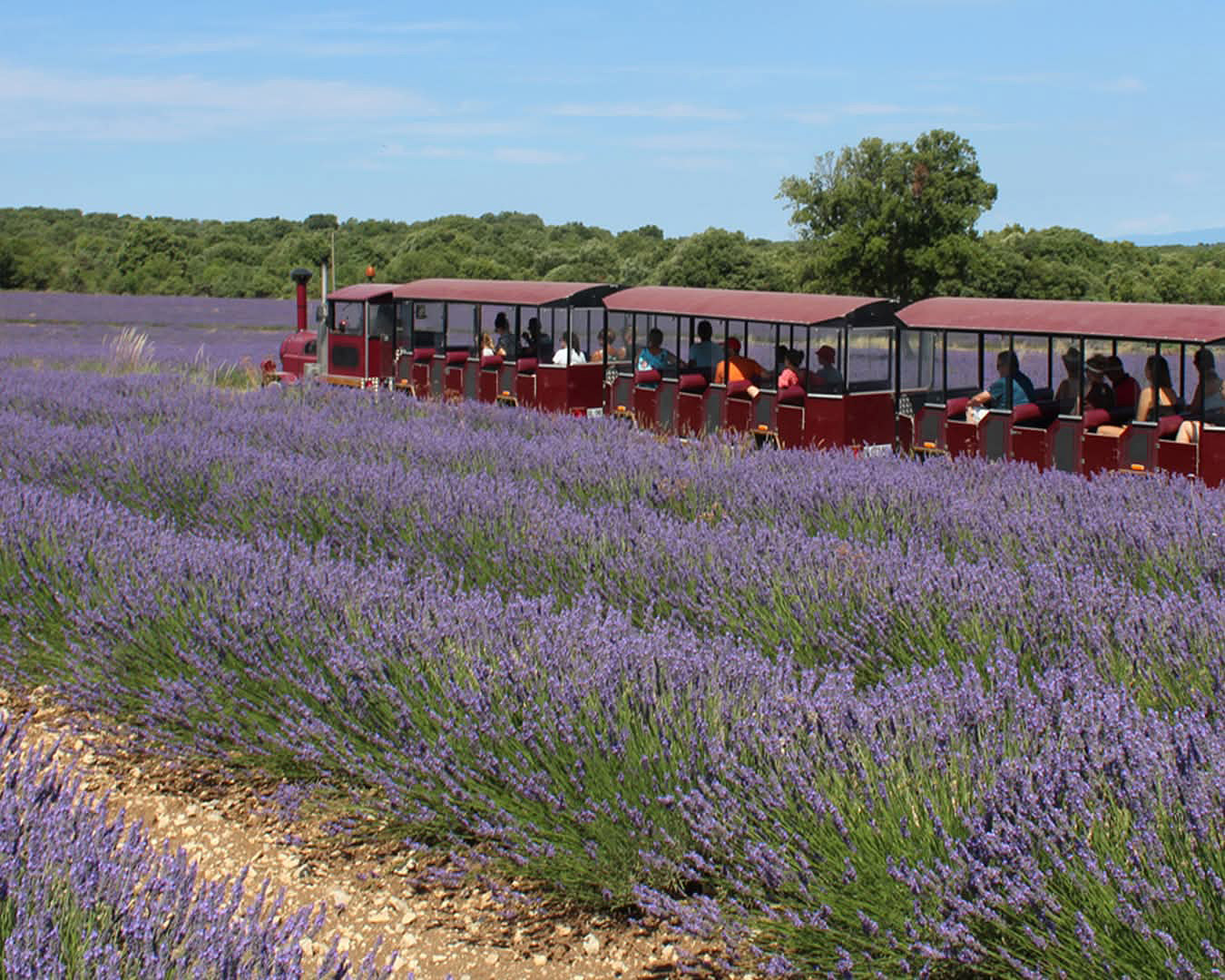 Dès l’entrée, on embarque à bord du « Petit Train des Lavandes » pour une balade bucolique à travers les vastes étendues violet‑bleuté de lavandin.